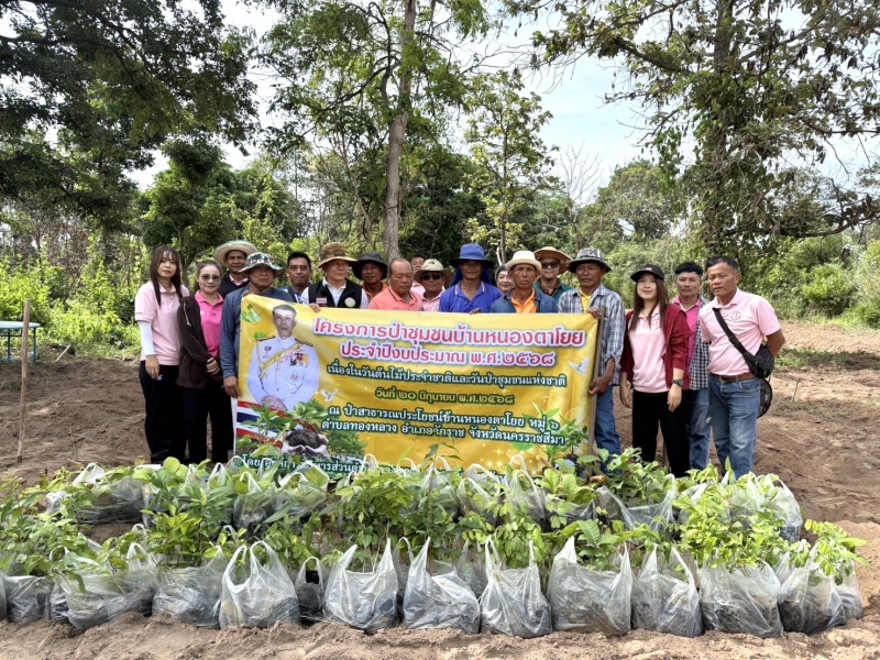 นายภิชัย แจ้งจิตร นายกองค์การบริหารส่วนตำบลทองหลาง นำคณะผู้บริหาร ข้าราชการ พนักงาน ลูกจ้าง พร้อมกับผู้นำชุมชน ร่วมกันปลูกต้นไม้ตามโครงการปลูกป่าชุมชนบ้านหนองตาโยย ประจำปี พ.ศ.2568 เนื่องในวันต้นไม้ประจำชาติและวันป่าชุมชนแห่งชาติ วันที่ 20 มิถุนายน พ.ศ.2568 ณ ป่าสาธารณประโยชน์บ้านหนองตาโยย หมู่ 6 ตำบลทองหลาง อำเภอจักราช จังหวัดนครราชสีมา