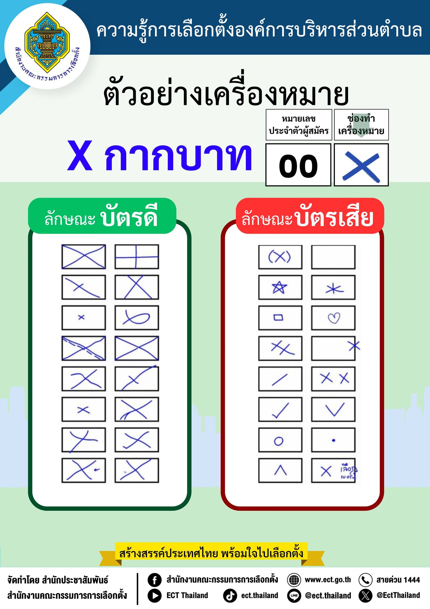 ตัวอย่างเครื่องหมายกากบาท ลักษณะบัตรดีและบัตรเสีย |